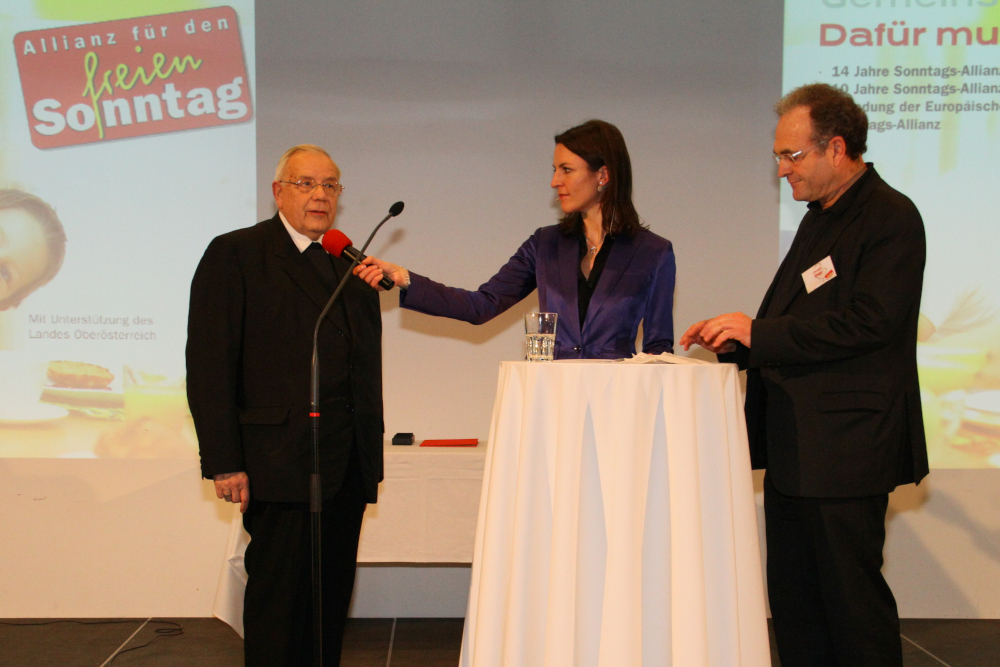 Auch nach seiner Emeritierung war Bischof Maximilian ein fixer Bestandteil unserer Veranstaltungen – etwa 2011 im Linzer Schloss bei der Veranstaltung „Gemeinsam frei – dafür muss Zeit sein“ oder bei unserer 25-Jahr-Feier im Kunstmuseum Lentos. Stets hat er uns ermutigende Worte für unseren Einsatz für den freien Sonntag mitgegeben.